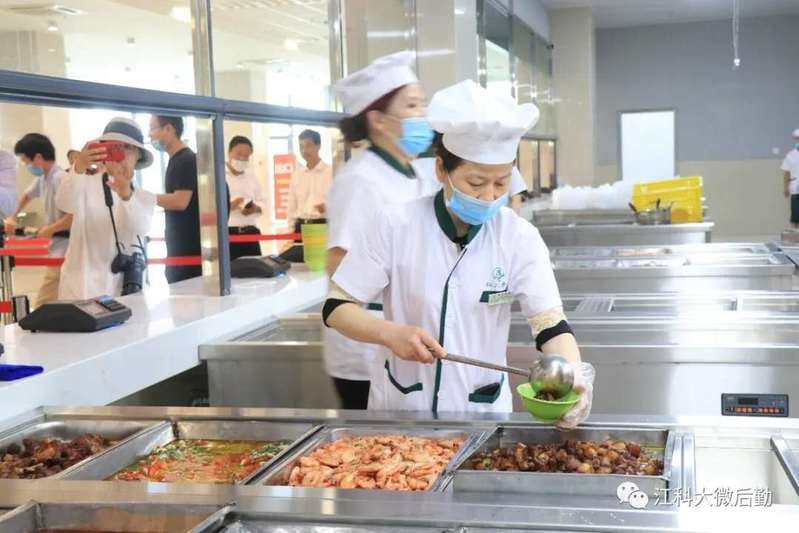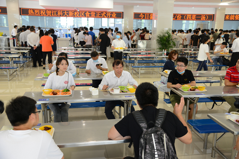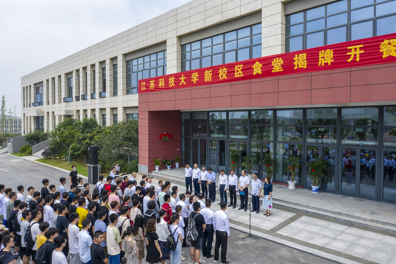 十里长山秀,百亩碧波柔。6月26日,江苏科技大学新校区西苑食堂揭牌开业,校党委书记葛世伦、党委副书记许俊华、副校长姜朋明,镇江市高校园区建设指挥部副总指挥马士良,中船第九设计院副院长鲁峰,中江国际江科大项目部经理朱伟平,校党委常委周春燕、刘新波等共同见证揭牌开餐,校党委副书记许俊华致辞,镇江市高校园区建设指挥部副总指挥马士良、中船第九设计研究院副院长鲁峰分别讲话,副校长姜朋明、中江国际江科大项目部经理朱伟平为西苑食堂揭牌。