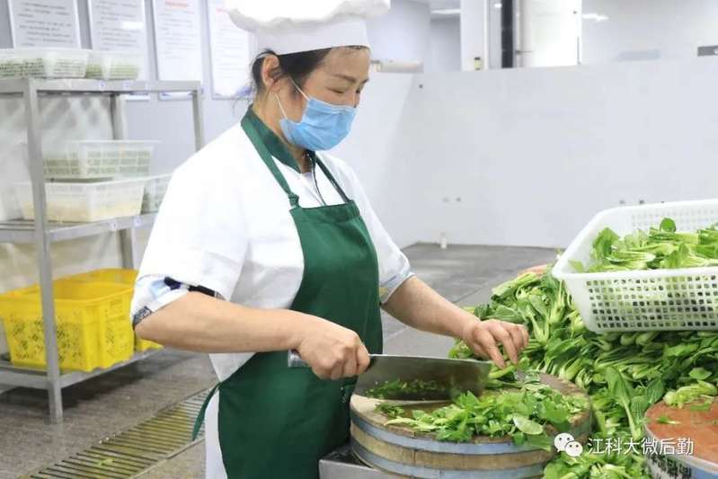早上七点,校卫队田进就和同事们来到了新校区岗位上,他们主要负责搬迁现场的道路疏通和现场车辆引导,时不时还帮搬运行李的同学搭把手。来到新校区后,他感觉新校区环境特别好,在这里工作,也让人的心情特别好。后勤集团新校区西苑食堂负责素加工的刘顺梅已经在加工素菜了,今天第一天到这边上班,呼吸着新校区的空气,工作在宽敞明亮的操作间,感觉很好。十点左右,素菜都已经加工得差不多了。大厨赵勇6月15日就来新校区上班了,为了正式开业,他和同事们已经准备了很长时间,头天晚上就调试好新的炉灶,把开餐要用的东西都准备好,特别准备了十多个菜品,希望给前来就餐的师生留下好的印象。