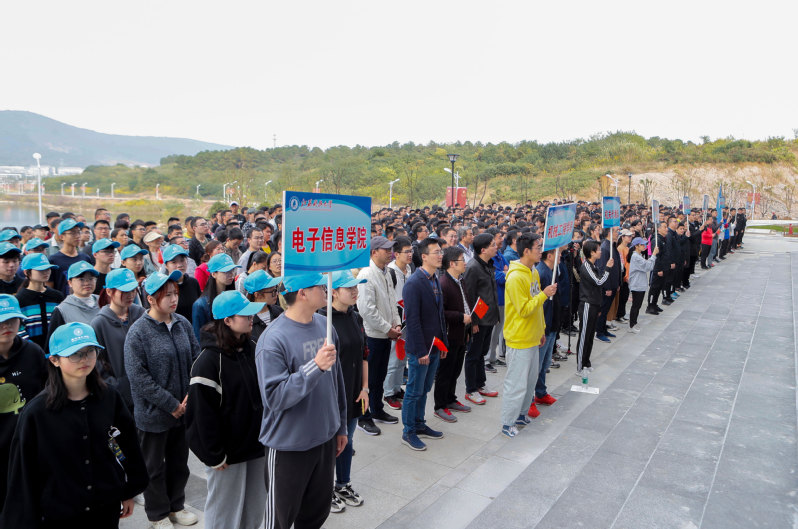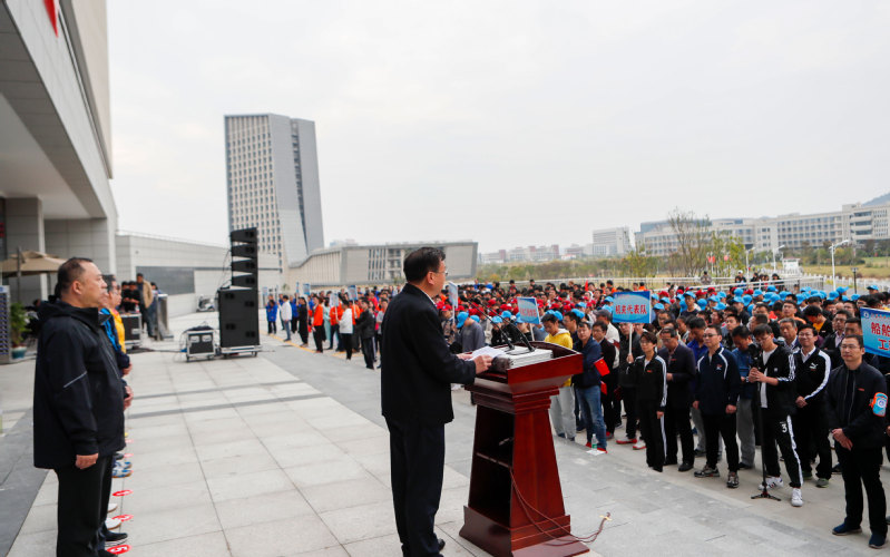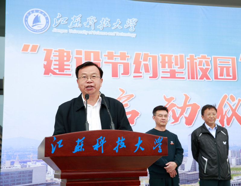 启动仪式之后,我们将举行校园环湖绿色健步走活动,今天,我们在山清水秀、环境优美的长山校区,沿着美丽的海韵湖走一走,就是要倡导节约健身的理念,推广养成积极健康、文明环保的生活方式。我们的脚步走到哪里,我们的节约环保的意识就传播到哪里。希望参加活动的广大师生,用蓬勃向上的精神面貌,在这次环湖健步走运动中体味节能减排的美好风尚,并通过这次活动,争做“建设节约型校园”的主力军和排头兵,带头影响身边的每一位师生,为建设新时代节约型的江苏科技大学作出应有的贡献!