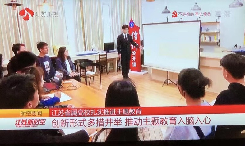 景荣春党支部所在的江苏科技大学是一所以船舶海洋为典型特色的高校,国产航母、海洋石油981平台、“蛟龙号”深潜器,这些大国重器无不凝结着江苏科技大学师生的智慧,为了让同学们在大国重器的氛围中感受向海图强的宏伟蓝图,党支部在巫蓉书记带领下创建爱国思政移动课堂,把思政教育的阵地搬到船舶模型馆、大型实验室,面向全校学生,主讲《大有可为的时代,大有可为的你》新思想公开课,获评江苏省“信仰公开课”示范课,与学生们共同学习习近平总书记系列讲话精神,引导高校青年学子不忘初心砥砺奋进,被学校作为主题教育典型案例进行宣传,先后登上学习强国平台3次。党支部一系列创新形式多举并措,主题教育入脑入心的做法受到江苏省电视台“高校扎实推进主题教育”专访并在江苏卫视“江苏新时空”新闻栏目报道。