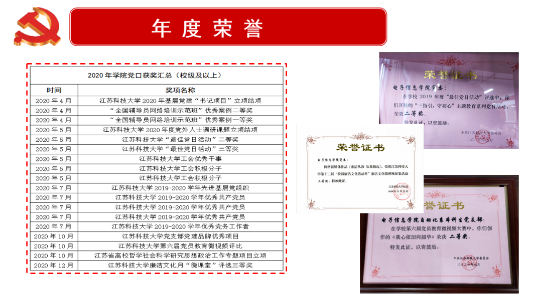 坚持党的全面领导,坚持从严治党,以办“和谐学院”、筑“温暖党组织”、创新争优为目标,全面推进思政建设、党风廉政建设、基层党组织建设及文化建设。完成党委换届,优化了基层党组织设置。电子系教工支部获校级优秀基层党组织称号。圆满完成巡察工作,课程思政工作持续进行、平稳过渡到新校区,教师满意率高!有力推动了学院红色阵地建设。在新校区学院大楼建设了党建活动室、支部书记工作室、统战办公室、工会活动室等。获先进基层党支部、优秀党员、优秀党务工作者、党建品牌优秀、党员教育微视频和最佳党日奖项,江苏省高校哲学社会科学研究思想政治工作专题项目立项等校级及以上荣誉10余项。