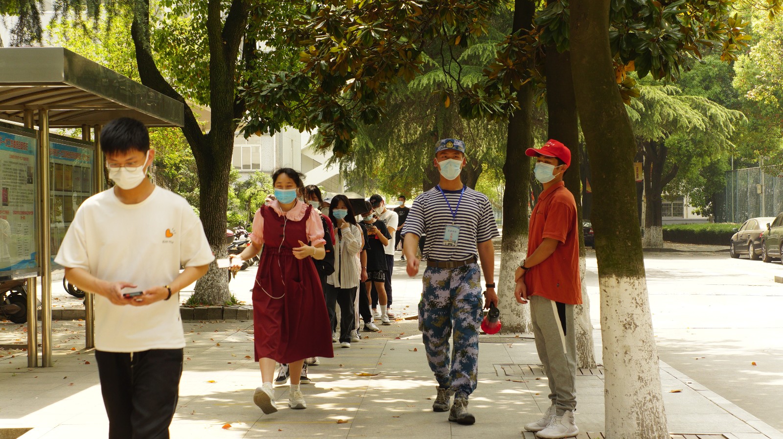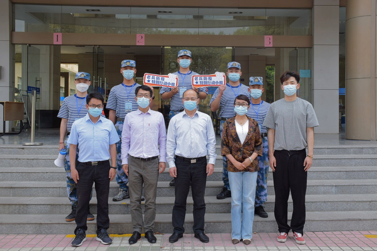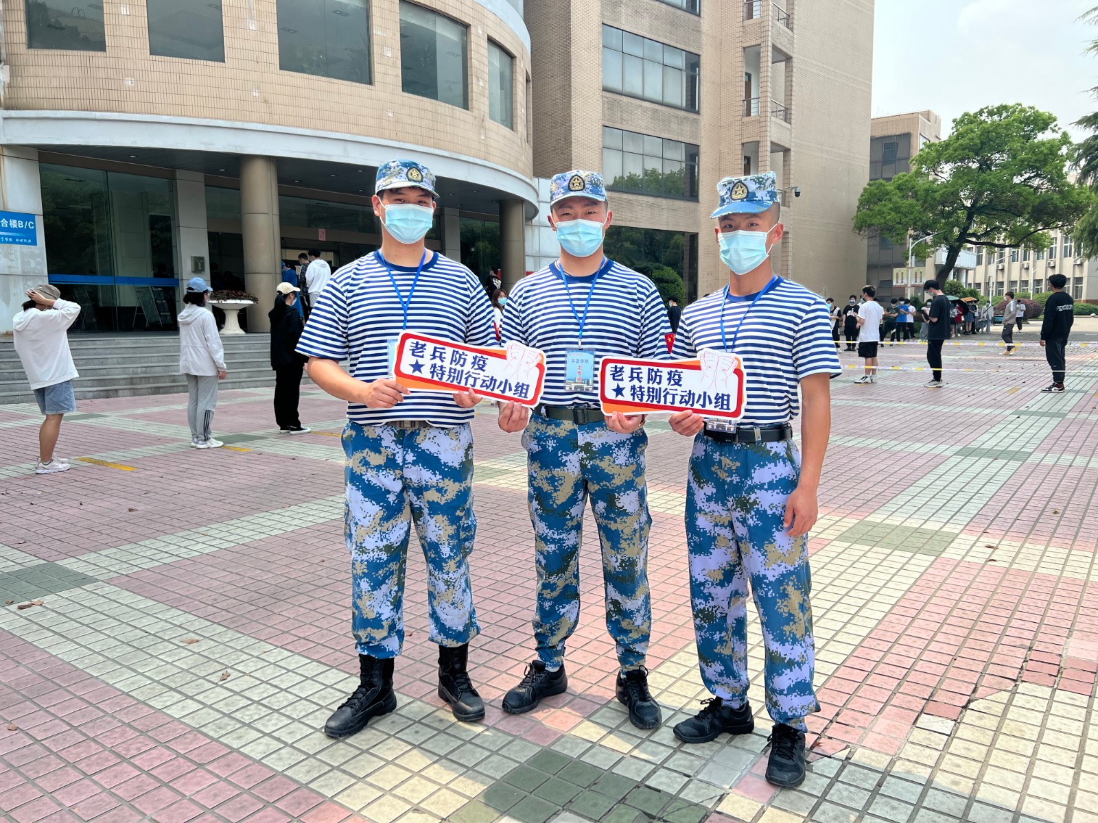 满头白发的老奶奶,在身着迷彩军服同学紧紧搀扶下走向核酸检测点;男教工骑行中突然摔倒落地,现场执守的“老兵防疫特别行动小组”同学眼疾手快冲过去救助;风雨中、骄阳下,迷彩蓝迷彩绿一身挺拔,口令干脆、指挥若定……连日来,一张张温馨流动的照片在江科大师生微信朋友圈刷屏,抢人眼球的迷彩身影正气凛然青春勃发。他们是江苏科技大学首批9名退役士兵防疫志愿服务小分队成员,他们的群名片是“老兵防疫特别行动小组”,从退役“老兵”到抗疫新兵,齐心协力守护校园和平安宁。