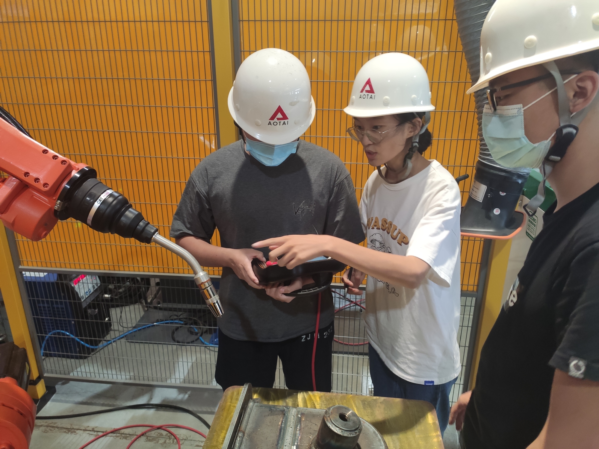 热爱可抵岁月漫长。大学期间,程程积极参加焊接类的各项学科竞赛,获第五届全国大学生焊接创新大赛二等奖、全国机器人焊接技能大赛学生组团体三等奖。2020年度“中焊杯”全国机器人焊接技能大赛,她作为学生组唯一的女生,在两周的培训时间里,每天抱着沉重的示教器站在狭窄工位上练习,一天9个小时的站立使双腿出现水肿,强烈的弧光导致手臂褪掉了一层皮。焊接实验材料大部分需要打磨抛光,她的手上至今留有打磨机割破的疤痕,腿上也有飞溅的烫伤痕迹。程程觉得这是蜕变道路上的印记,终将伴随着校园的日升月落迎接成长的洗礼。
