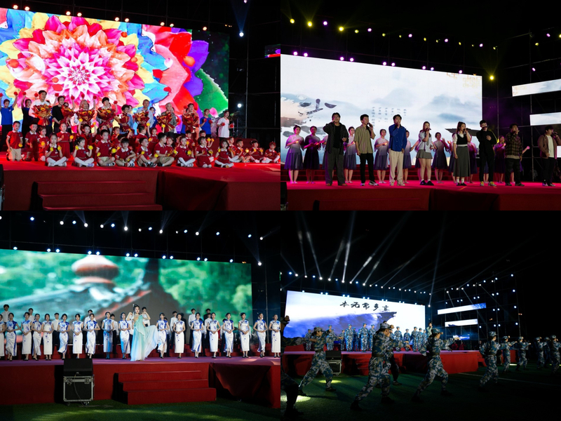 江苏科技大学老中青三代同台献舞《送你一朵小红花》,用自己的方式唤起同学们对生活的勇气。跟随《泊船瓜洲》的悠扬旋律,深蓝礼仪团向大家诉说水韵镇江之美。十年一脚印,十年一成长;九首歌,九个年代,由三届江科大校园十佳歌手带来的歌曲串烧《无问西东》奏响江科大人对于初心和梦想的回望。校附属幼儿园和国防教育拓展班带来《破浪前行》,诠释了中国人民在艰难的征程中勇毅前行,劈波斩浪的豪情。