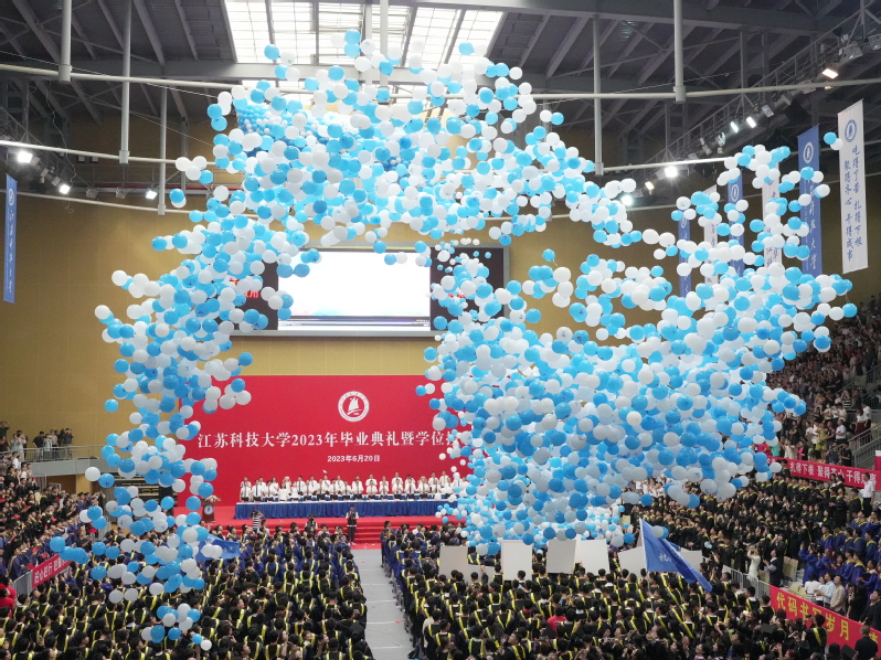 鸿鹄高飞,一举万里。6月20日,江苏科技大学2023年毕业典礼暨学位授予仪式隆重举行。2023届毕业的4226名本科生、1486名博硕士研究生和125名来自23个国家的留学生,携着深深祝福与殷殷期盼,共赴青春盛典,行拨穗正冠之礼,叙同窗共进之情,在师长亲友的见证下,走向更广阔的天地,书写更绚丽的青春。