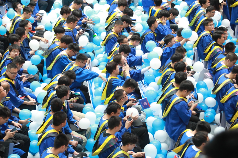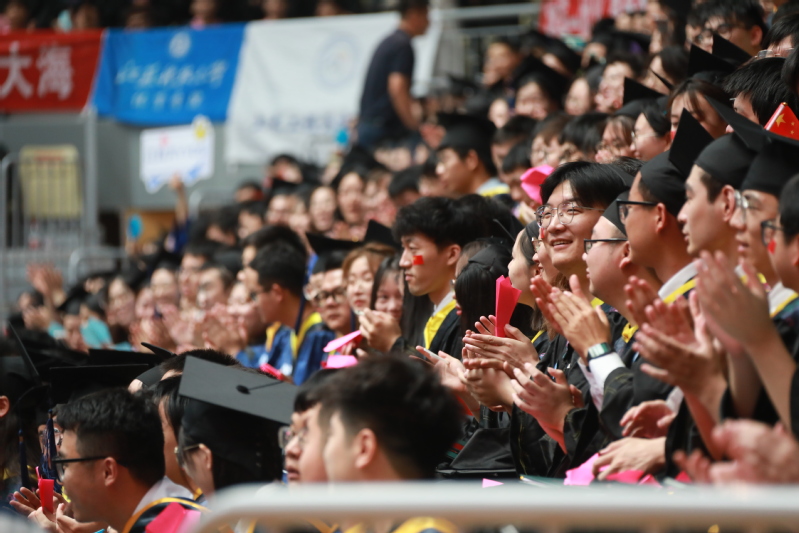 “今天以后,你们就要离开心中的‘浪浪山’,去各自的世界里做一个‘大人’了”,周南平细数诗意青春里可爱有趣的细节:“作为最后一批‘住客’,你们拥有着对悠然见南山的南校区、外号‘小牛村’的西校区的独家记忆;你们选修到了令人羡慕的潜水、浆板、皮划艇课程,划起了海韵湖第一年下水的端午节龙舟;你们吃到过江科大专属定制月饼、文创雪糕;你们用文理大楼的光学望远镜观测过中秋圆月、灿烂星河;你们看到了校园里天鹅宝宝的破壳而出;你们更见证了学校被遴选进入江苏高水平大学的行列.....”他希望这些母校留下的浪漫记忆,在毕业生们心中化为澎湃的爱意,帮助他们成长为活泼、善良、纯真的“大人”。