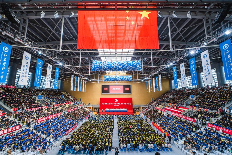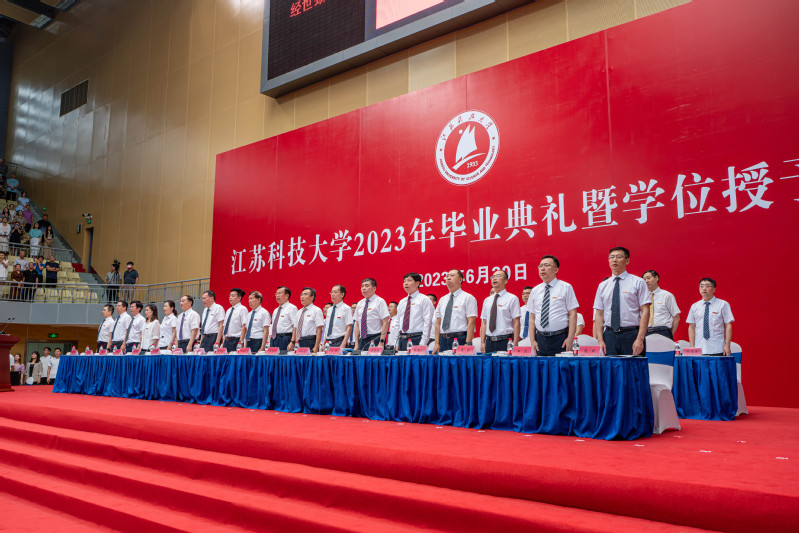 8点30分,在激昂雄壮的国歌声中,江苏科技大学2023年毕业典礼暨学位授予仪式大幕开启。毕业典礼主会场设于镇江市高校园区共享体育馆,张家港校区设置视频分会场。典礼全程通过江科大官方微信视频号、抖音、微博、哔哩哔哩等网络平台直播,全网在线观看累计16万余人次。