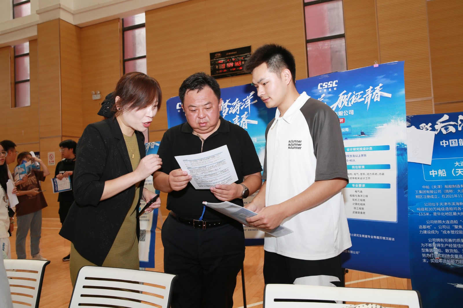 本次招聘会共54家用人单位参会,专业需求覆盖各个学院,吸引了近4000名应届毕业生前来挑选岗位。同学们积极与用人单位代表交流,踊跃投递简历,407名毕业生现场达成了初步就业意向。招聘会前期,各学院主动与企业对接,广船国际、沪东中华、黄埔文冲、第七〇八研究所等单位向重点需求专业的学生做宣讲,宣讲会有效搭建了单位与毕业生们之间的交流平台,“江苏科技大学的培养方向和我们企业需求相匹配,学生专业基础扎实,培养潜力大。学生们投递热情也很高,已经收到了一百来份简历。”中船黄埔文冲船舶有限公司人力资源部赵李君介绍道。