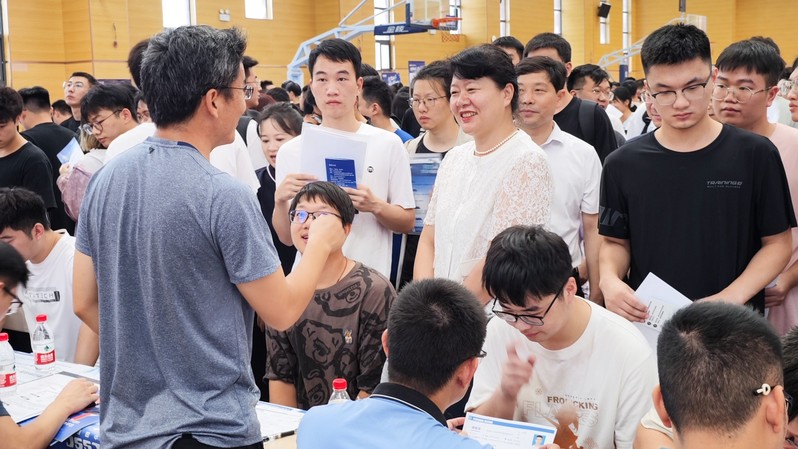 9月11日,我校举办中国船舶集团有限公司2024届校园专场招聘会。校长嵇春艳、副校长胡爱祥深入招聘会现场,了解用人需求,并与应聘毕业生亲切交谈。