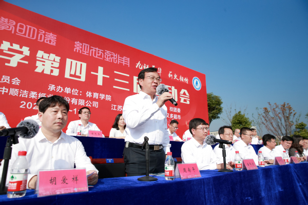 周南平宣布江苏科技大学第四十三届运动会正式开幕。