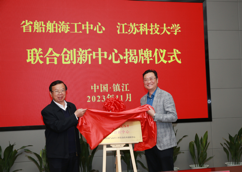 11月13日,江苏省船舶与海洋工程装备技术创新中心(简称省船舶与海工中心)和江苏科技大学共建联合创新中心揭牌仪式在江苏科技大学举行。江苏科技大学党委书记周南平出席会议并介绍学校办学情况,江苏省产业技术研究院副院长/省船舶与海工中心法定代表人郜军出席会议并介绍了江苏省产业技术研究院科研机制改革探索历程。会议由江苏科技大学副校长周宏根主持。会上,省船舶与海工中心和江苏科技大学签订合作协议,郜军和周南平共同为联合创新中心揭牌。