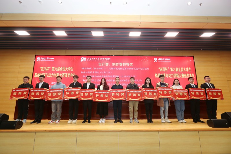 19日上午在图书馆105报告厅举行颁奖典礼,校党委常委、副校长胡爱祥,中国造船工程学会常务副秘书长金向军,江苏省科学技术协会学会部副部长鲍张智,江苏省造船工程学会秘书长鲍红淮,江苏省工程热物理学会秘书长陈晓平,江苏省内燃机学会秘书长贾和坤,以及学校教务处、双创学院、学生处、研工部、团委等职能部门领导出席颁奖仪式。颁奖典礼由江苏科技大学能源与动力学院院长陈代芬主持,金向军副秘书长、鲍张智副部长、鲍红淮秘书长分别宣读制作赛、设计赛和技能赛的表彰决定,与会领导嘉宾为获奖选手颁发荣誉证书。