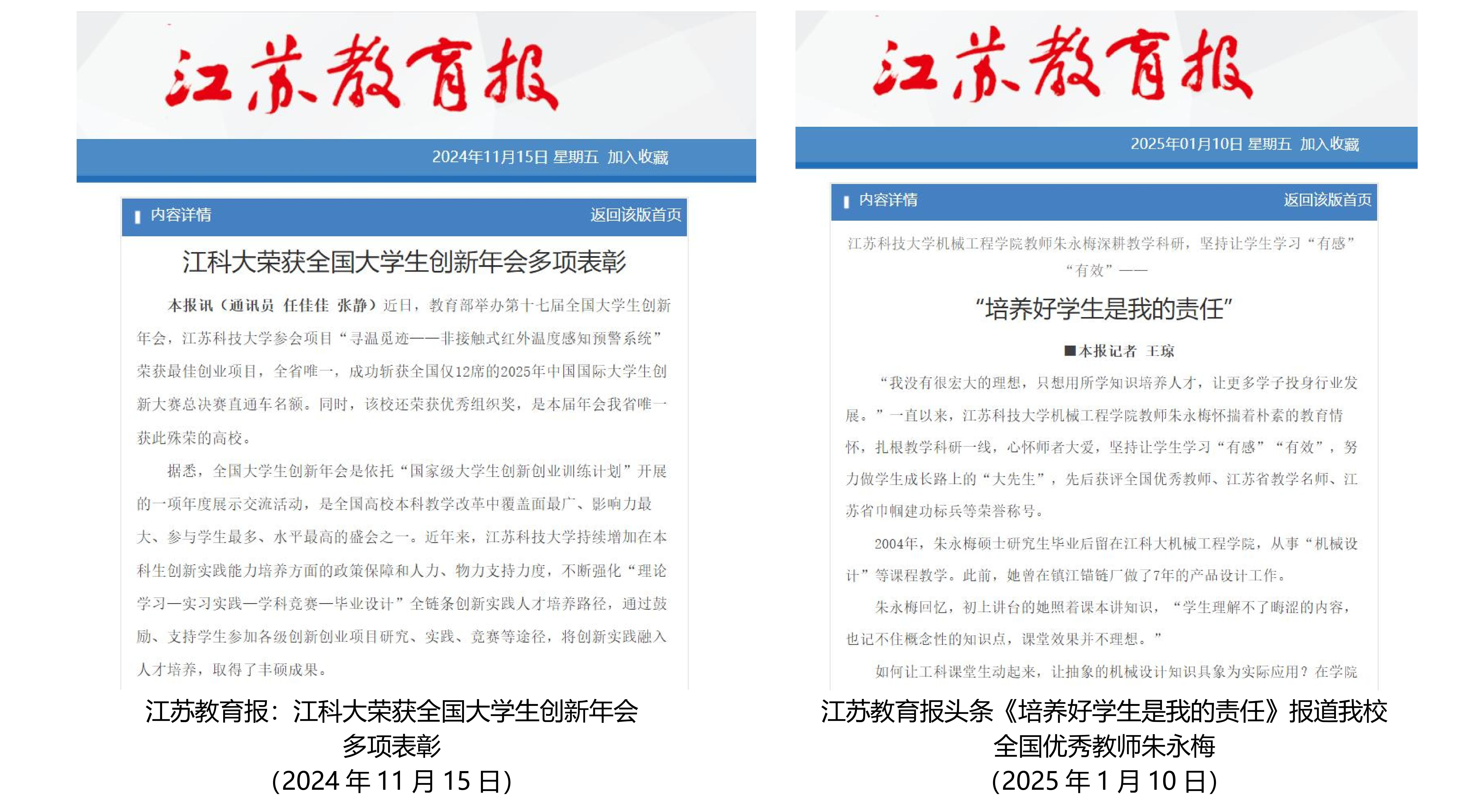 学校获评江苏教育新闻宣传工作优秀单位,《江苏科技大学报》在社会效益考核中获“优秀”等次,获评“船舶新闻优秀报刊奖”。新媒体矩阵粉丝量浏览量大幅提升,上榜全国高校官方视频号综合影响力百强榜单;获评中国大学生在线“优秀校园网络通讯站”、中青网年度优秀校园新闻专题。