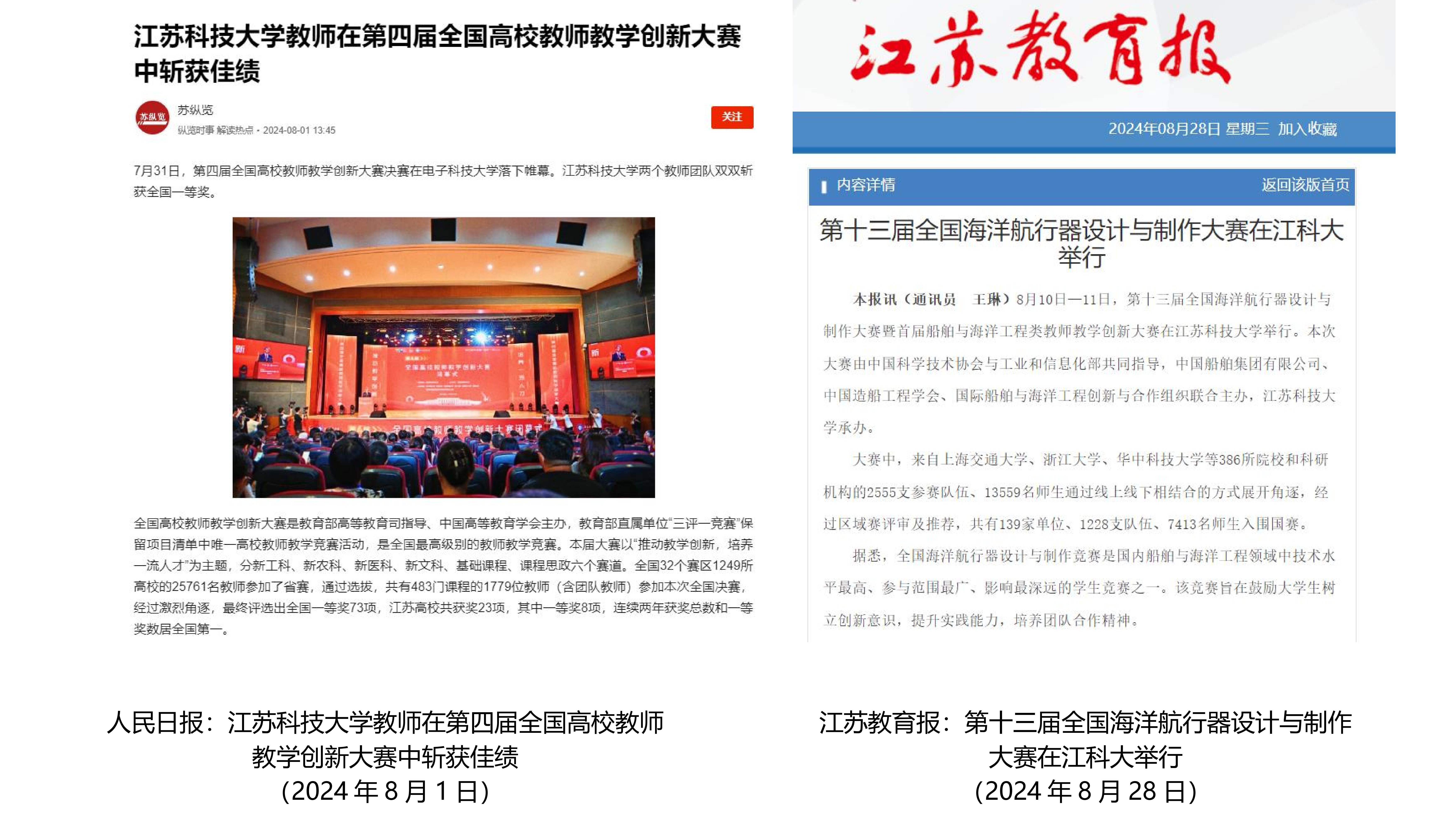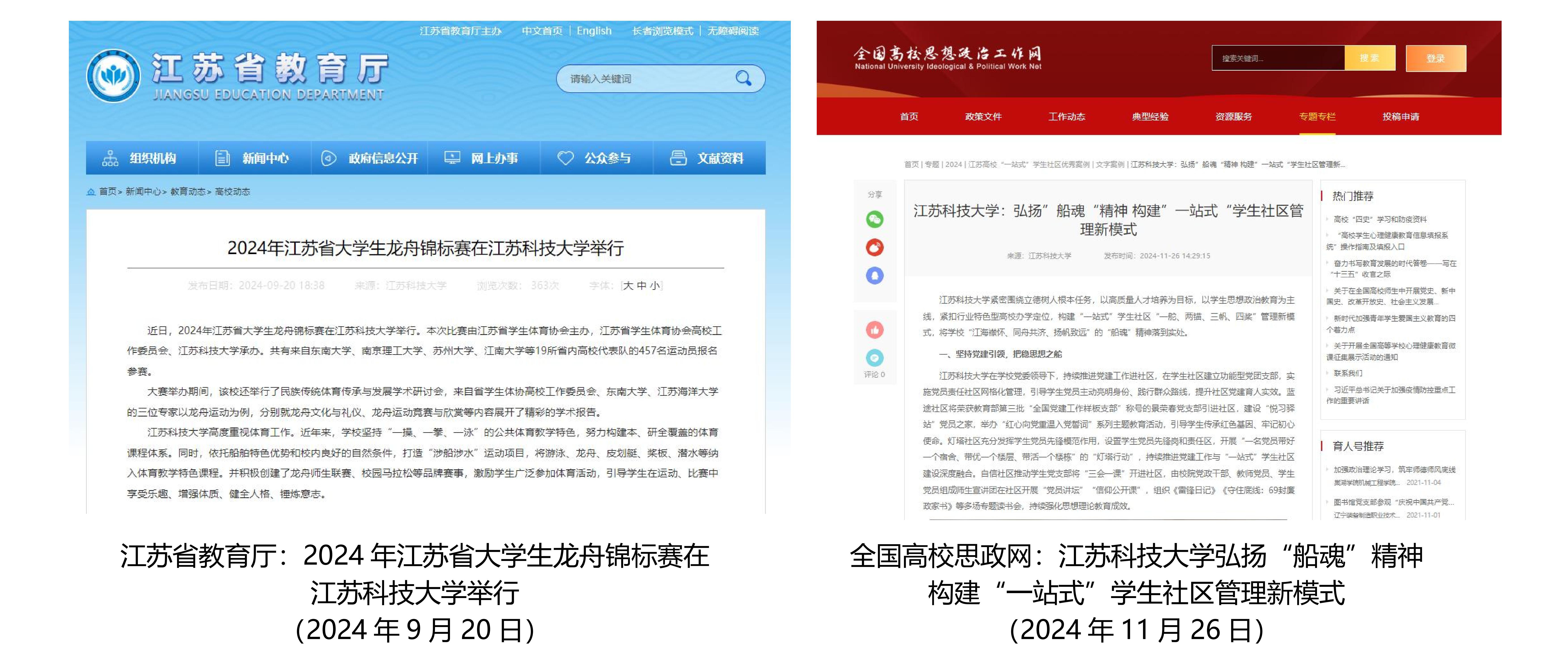 中央电视台、央视新闻多次报道学校深化产教融合,服务船舶海工产业科技创新;中国船舶报、新华日报、江苏科技报等媒体深度报道学校办学90周年,校史馆揭幕开馆;人民日报、新华社、科技日报等深度报道学校首次以第一单位在《Nature》发表研究论文,新华日报跟进报道该成果落地转化动向;新华日报深度报道学校科技助力国产首艘大型邮轮建造;中国船舶报、新华日报、江苏省教育厅官网等报道学校牵头江苏省高技术船舶和海工装备产业链党组织联建共建;中国新闻网报道学校趣味蚕桑课程受学生热捧;与央视网共创《我的大学超酷》播放量超百万……
